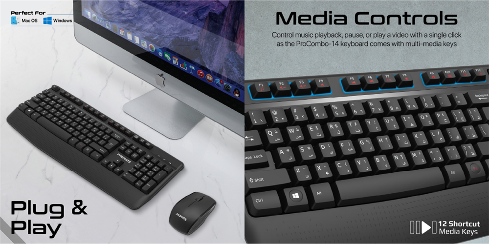 - Wide-Ranging Compatibility: The ProCombo-14 keyboard and mouse have universal compatibility, making it compatible with Windows 7/8/10/11/XP/Vista, and Mac OS. Works well with all major computer brands and PCs like Dell, HP, Asus, Acer, Lenovo, and more.