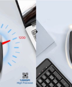 The ergonomic keyboard features built-in media keys and a palm rest for all-day typing ease, while the ambidextrous mouse delivers smooth navigation with 1200 DPI accuracy.