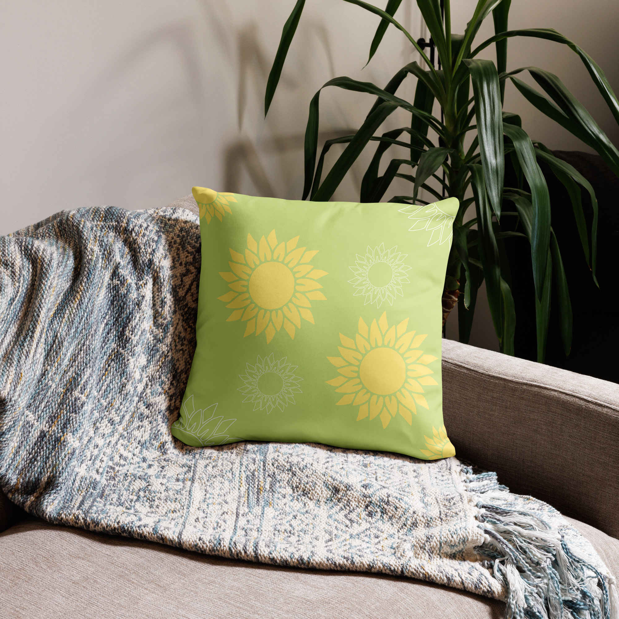 Add a touch of rustic charm to your space with this 18″ x 18″ Olive Sunflower Motif Cushion.
